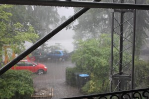 I took some pics from the protection of the flat’s balcony, but even then I got a bit damp and pelted with small hail.