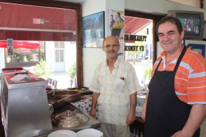 After leaving the ruins, the truck dropped us all in Selçuk for 90 minutes. If you weren’t back by noon, you needed to find your own way back to the campground. We decided on a longer visit and wandered the streets, inspecting shops and assessing restaurants. Poor John finally picked a likely one.