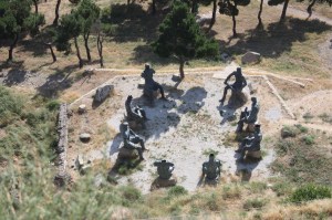 From above we saw a circle of eight statues—all knights, all seated, some missing heads and limbs. Initially we assumed they had been vandalised, but when we reached them we realised the absence of body parts was intentional. That’s the way the sculptures were made.