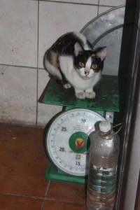 The other night in Hanoi, we stopped at a little place that was a cross between a hole-in-the-wall and a street stall. Soon after we were seated, the owner’s cat popped out from under the stairs and came to greet us. Although cat was nowhere on the menu, the cat’s antics could make you wonder.