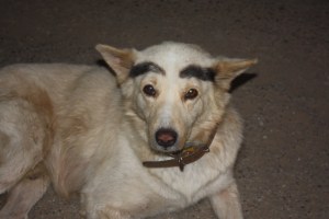 News flash: One of our group met Groucho’s family. The eyebrows are fake—added by his ‘dad’. Apparently Groucho recently lost a dog fight. Perhaps dad thought the eyebrows might scare off any other opponents. We wish him well.