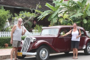 Phil and Marina check out an old Citroen in Luang Prabang in Laos. They resisted driving away in it.