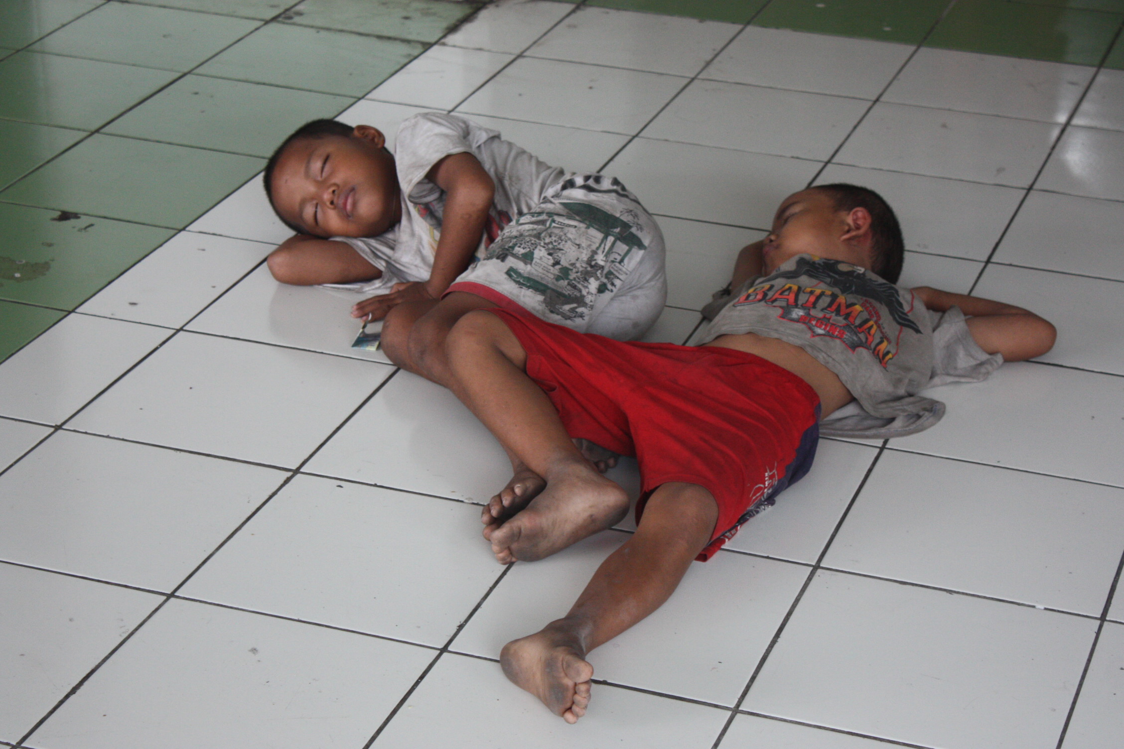 Two urchins asleep on the floor in the Jakarta Railway Station. Orphans or con artists? When it comes to kids like this, does it matter?