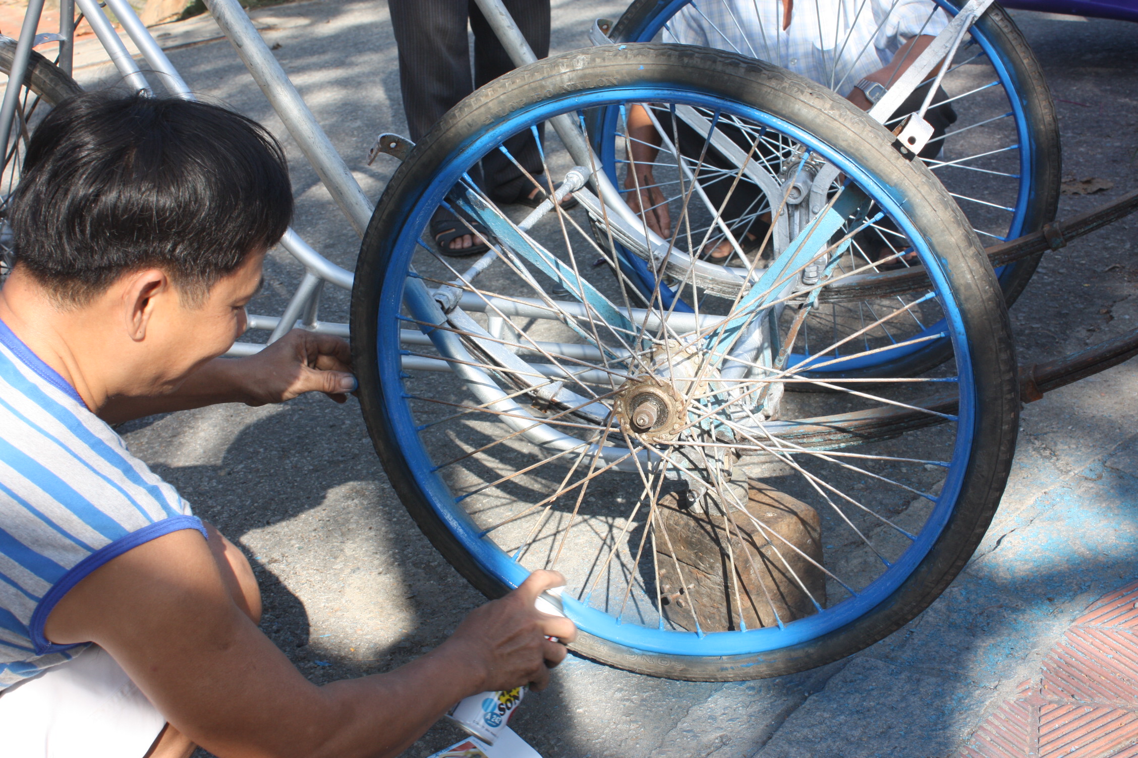 When drivers aren’t pedalling, they’re snoozing, chatting to one another or looking after their cyclos. All of them seem to do routine maintenance, but I think the paint jobs and major repairs are done by the owners.