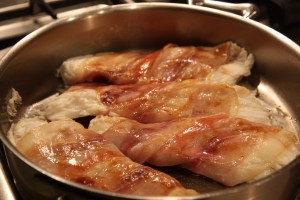 Prior to our arrival, Jan cruised through her cookbooks for a likely page-32 recipe. She found a winner, but it called for action. After a quick sightseeing stop at Tower Hill, we headed to Port Fairy to raid Jan’s son’s veggie garden (covert operations), then Basalt Cafe for lunch, then the fishmonger’s and grocer’s for more supplies, and finally home to cook.