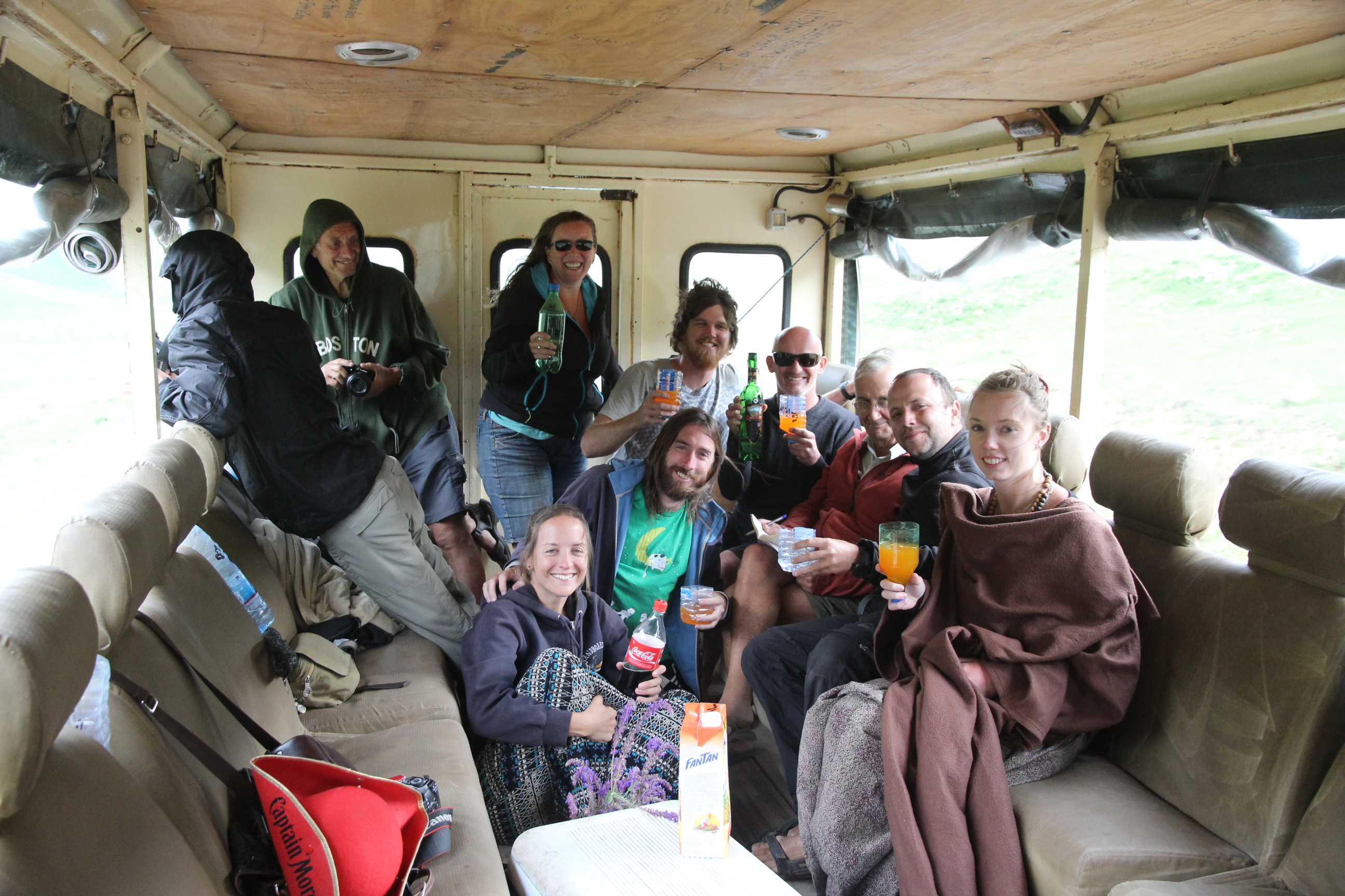 But the thing that tickled me most—and I think Poor John was pretty darn chuffed (pleased) too—was the spontaneous happy birthday toast given to him by our travelling companions on the truck.