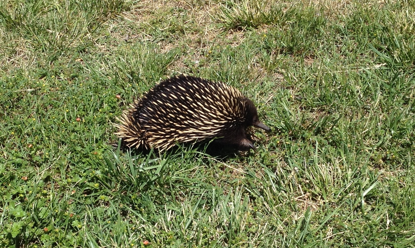 The echidna had other ideas. About 20 metres short of where I hoped we’d get to, it did a 90-degree turn and headed straight for the road. By then about 10 people were crowded around. I think our little friend had had enough.