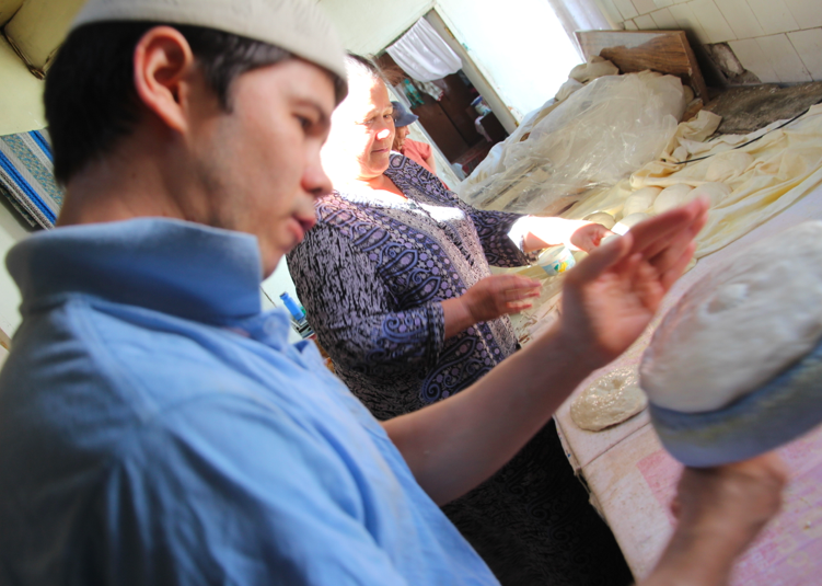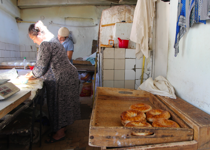 Poor John was talking about a small loaf of bread given to us by a woman who was baking hundreds of loaves every hour in a small bakery on the back streets of Tashkent, the capital of Uzbekistan.