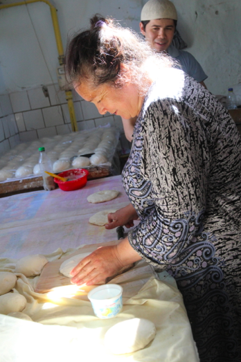 We watched a demonstration of the whole process and I even got to punch a couple of loaves with the nail-studded tool used to imprint the middle of each loaf. Psst! I bought a couple of those tools in Khiva and can’t wait to try them out at home.