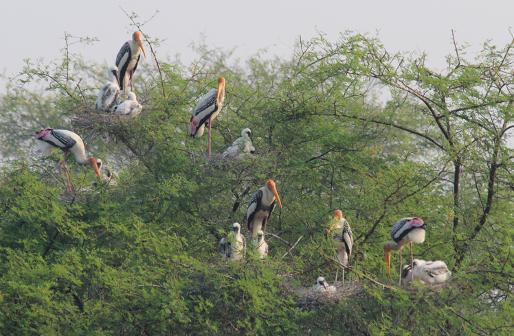 Painted storks happily share their habitat with other waterbirds, and we saw storks, herons, cormorants and spoonbills sharing the same tree.