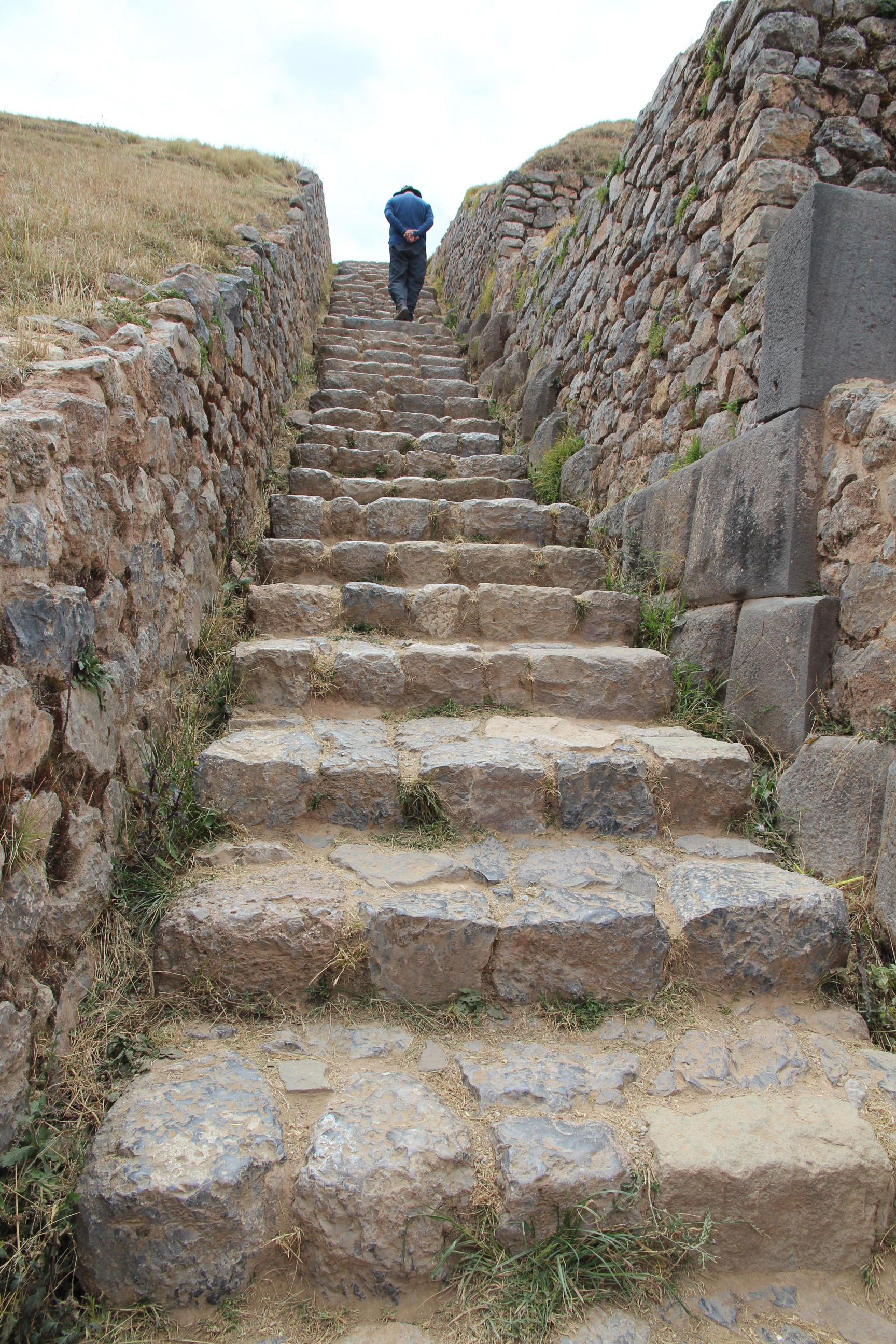 Started in the mid-1400s, Saqsaywaman has gigantic polished dry stone walls, made of boulders that have been cut to fit tightly together without mortar. These boulders are so closed spaced that a single sheet of paper cannot be slid between them.