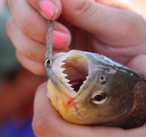 So why did I say the piranhas didn’t have a chance? It’s because we spent a morning piranha fishing and took 40 or 50 fish out of the system. It was a matter of dip in a line and pull out a fish.