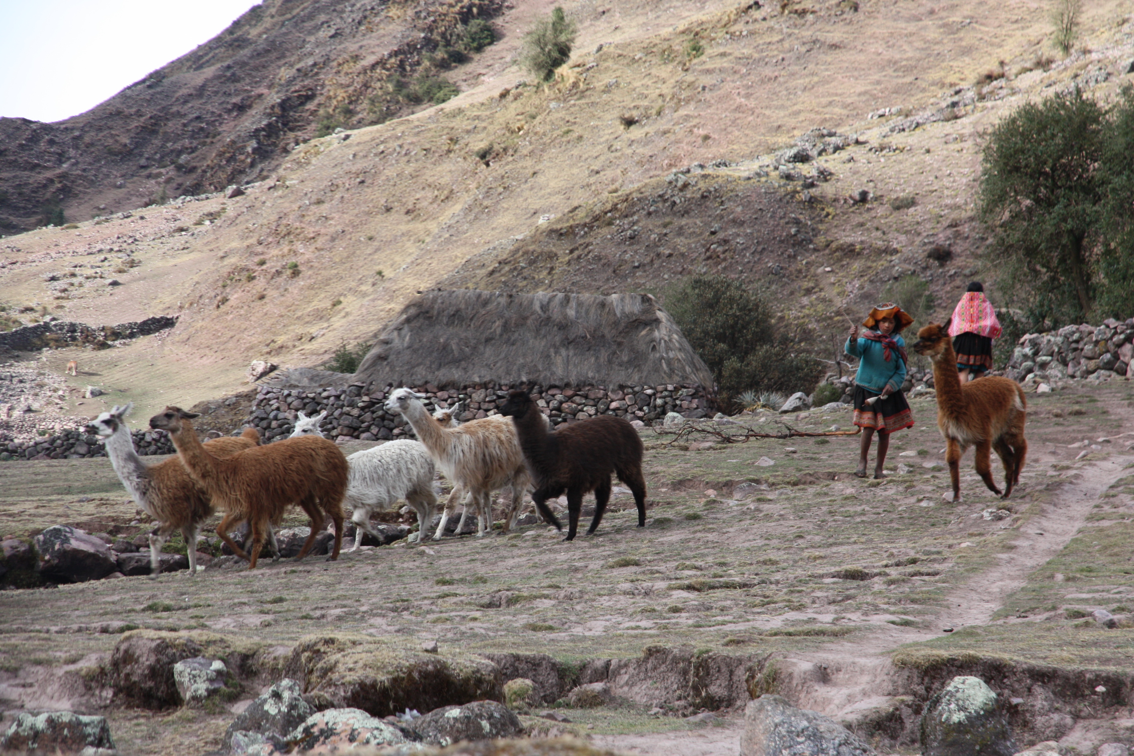 For starters, we saw the women of the village set out for the day with their flocks of llamas and alpacas. I suppose visitors to Peru think these women ‘dress up’ for the tourists, but their every day clothes are colourful skirts and shawls. And in spite of the chilly temperatures, they wear sandals without socks or stockings.
